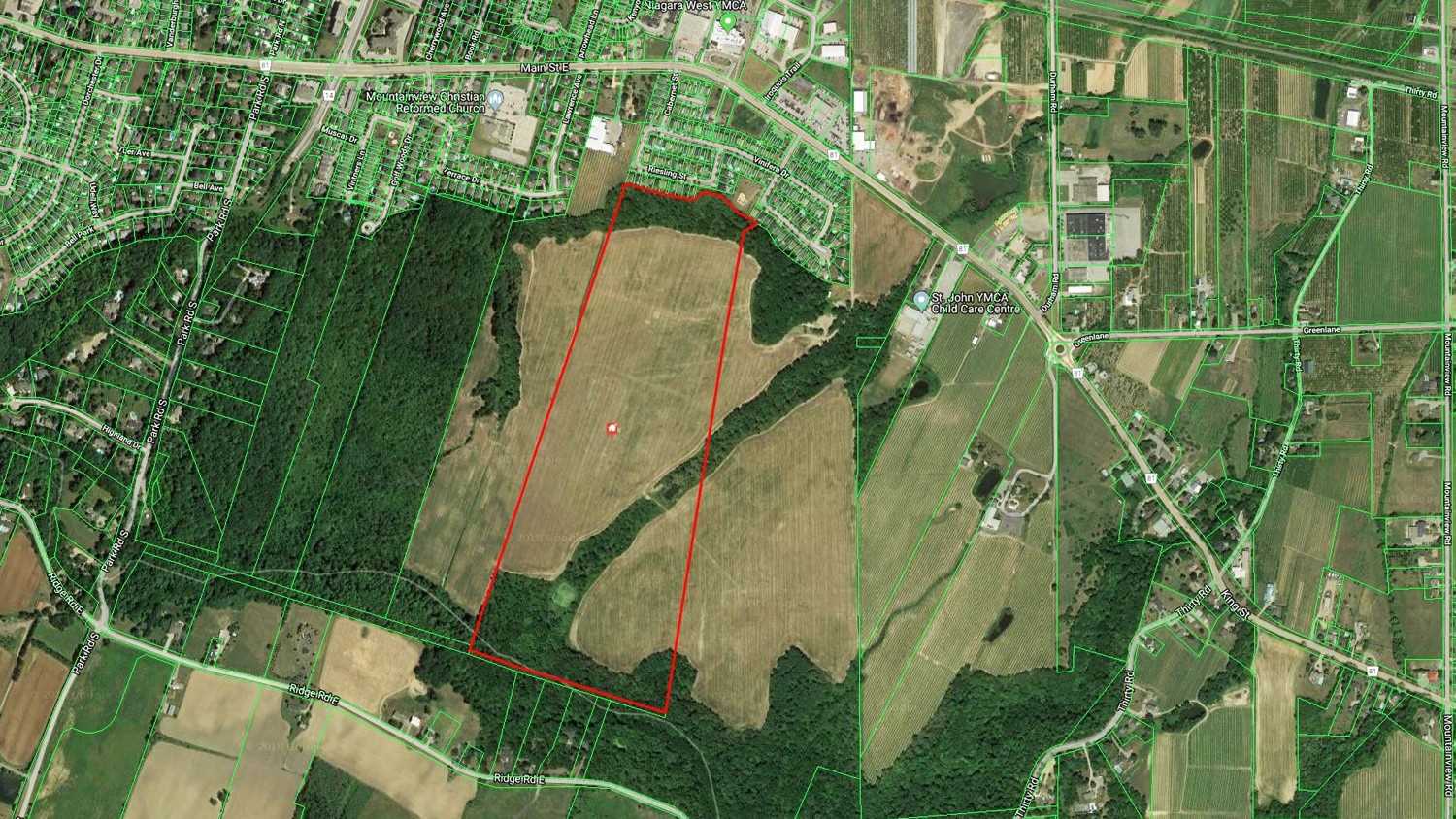 218 Acre Land Located In The Heart Of The Golden Horse Shoe. Few Mins To The Future Metrolink Go Stations From Toronto To Niagara Falls. 2 Frontages: Main St & Ridge Rd, At Center Of Town, Neighbored By Large Residential & Commercial Area & Winery. Ridge Rd Frontage At The Edge Of Escarpment With Ontario Lakeview. City Water & Hydro In Site. 2 Titles (Almost Same Size) Sold Together, Seller May Take Back First Mortgage.